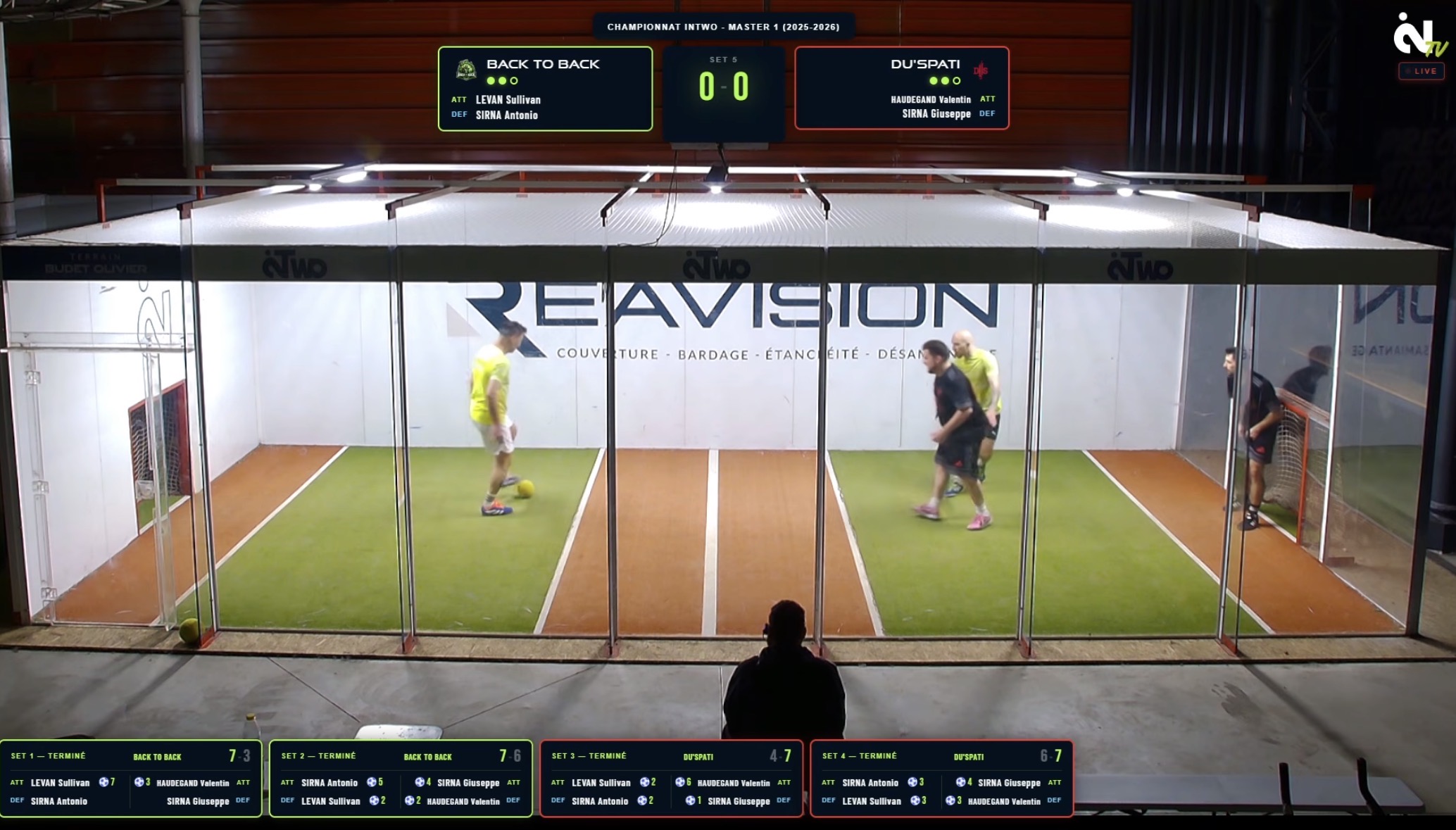 Hier, le match de Master1 opposant Du'Spati à Back to Back, diffusé en direct sur IntwoTV, a marqué bien plus qu’une simple rencontre sportive. Il a surtout servi de terrain d’essai pour un tout nouveau dispositif de scoring en direct, pensé par Alexandre Sirna, pour offrir une diffusion digne des standards professionnels.